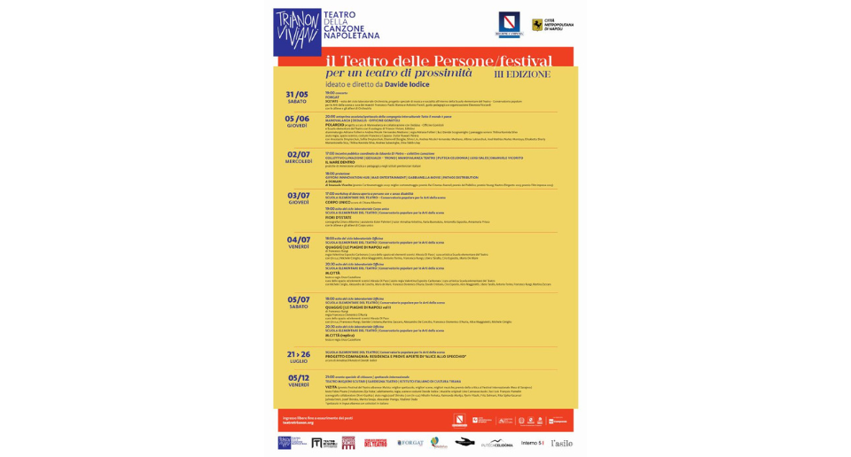 Il Trianon Viviani si avvale del sostegno della Regione Campania, la Città metropolitana di Napoli e il Ministero della Cultura, con il patrocinio di Rai Campania.